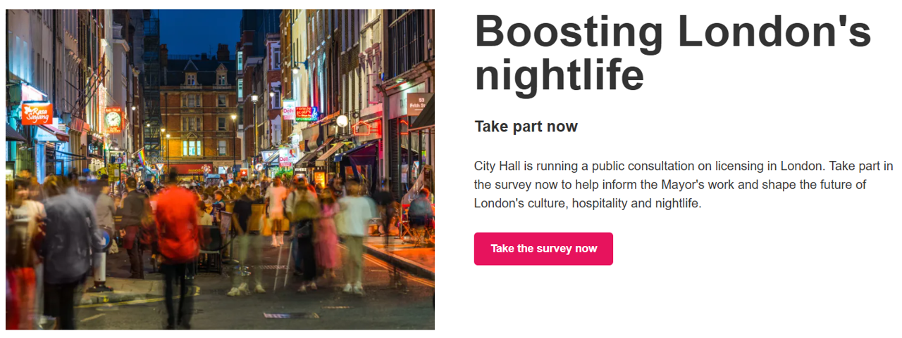 The consultation is live. Please read it, fill out the survey, and share it with anyone who works in or cares about London's hospitality, nightlife and events industry. It takes 10 minutes.